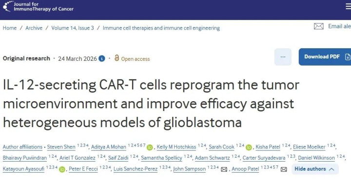 近日,好意思国杜克大学商议学者在期刊《Journal for ImmunoTherapy of Cancer》上发表了商论说文,题为“IL-12-secreting CAR-T cells reprogram the tumor microenvironment and improve efficacy against heterogeneous models of glioblastoma”,本商议展示了经(IL - 12)武装的嵌合抗原受体 T 细胞(CAR - T 细胞)的多效性益处,其不仅增强了对肿瘤抗原阳性细胞的靶向作用,还同期重塑了微环境,以蜕变适合性免疫来抵抗抗原阴性克隆。这种政策为改善胶质母细胞瘤(GBM)的治愈结果提供了一种潜在的临床可行要领,不详侧目毒性淋巴细胞断根的需要,并应答肿瘤异质性。