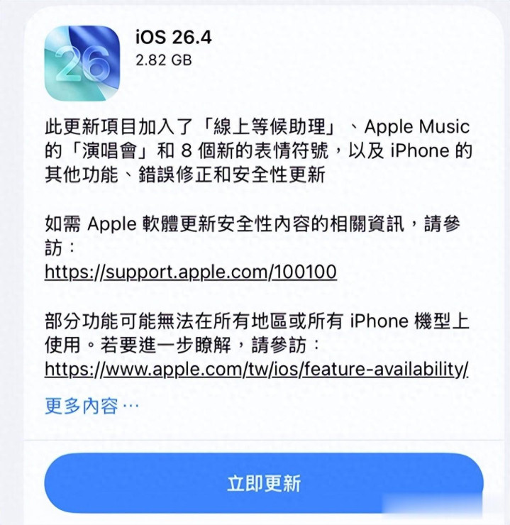 苹果认真推送 iOS 26.4,带来了23项功能升级与系统解救,亚搏(中国)app障翳音乐、系统界面、阴事安全以及日常使用体验。