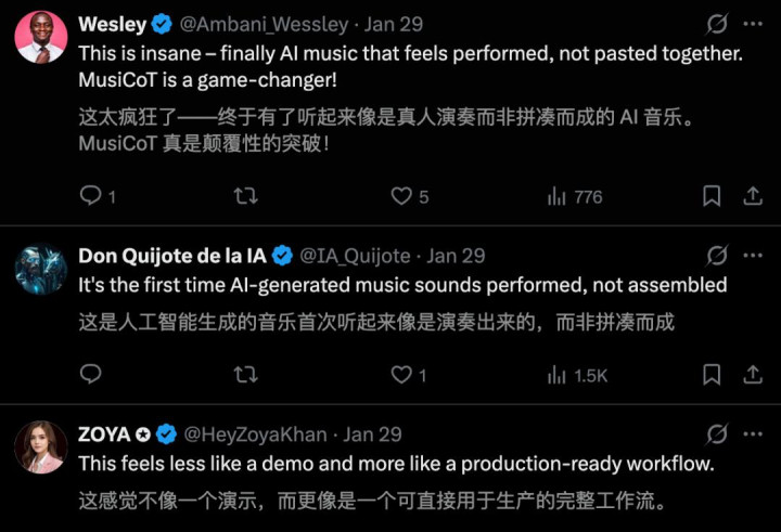 将自研的MusiCoT与系统化评测、后考试、强化学习跑成了完好的闭环,让模子参预了「有节拍、有标的」的永久进化。
