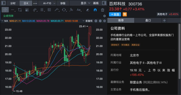 百邦科技近日股价高潮昭彰。3月26日,其股价大涨超13%,3月27日再涨3.41%,两个往异日累计涨近17%。公司最新市值约30亿元。