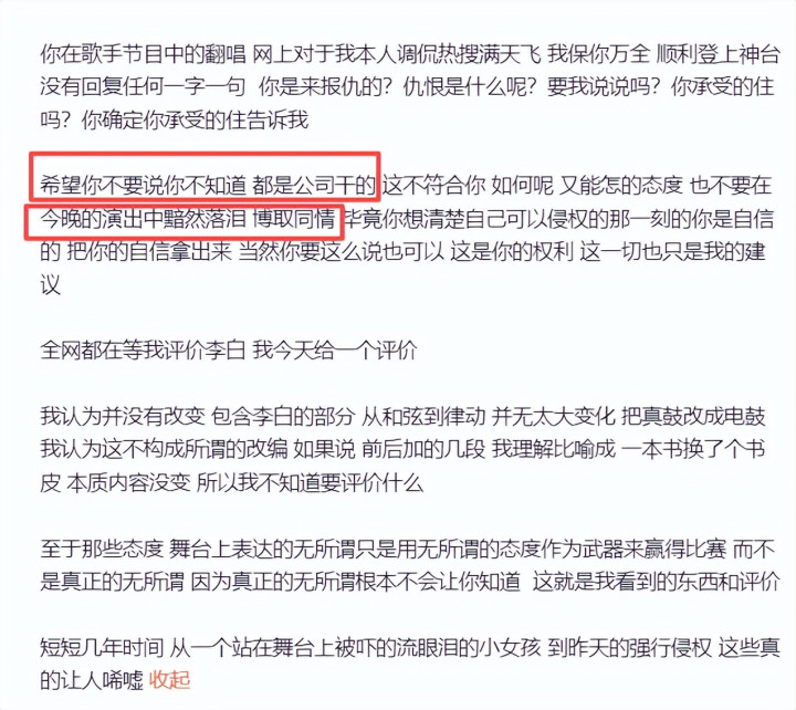 “短短几年本事,从一个站在舞台上被吓的流眼泪的小女孩,到昨天的强行侵权,这些真的让东说念主唏嘘。”