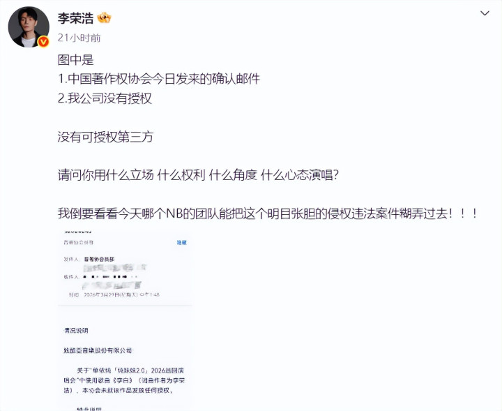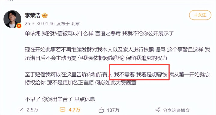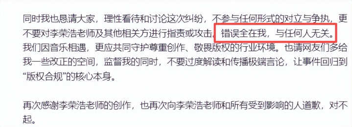 况且说出了“演叨全在我,与任何东说念主无关”这样的话,示意我方自得补偿总计用度,但李荣浩也没睡,在凌晨快两点的时候发了文。