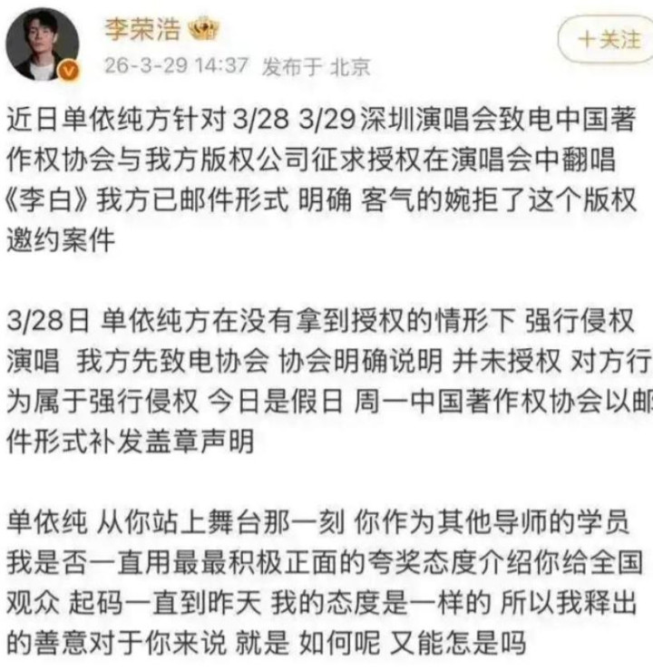 而抛开侵权不谈这也不是单依纯第一次对他的歌进行改编了,在某个节目上的改编幅度更是夸张,径直让他这个原唱的公论冲上了天。