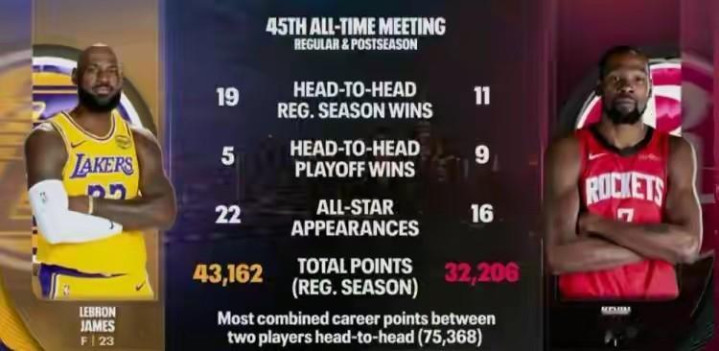 ♥第20个赛季单场45分球员仅两位:科比和詹姆斯。詹姆斯——对阵定约30支球队皆砍40+,历史20+三双最老球员(38岁33天),首位荟萃21个赛季均拿三双球员,均为NBA历史第一东谈主