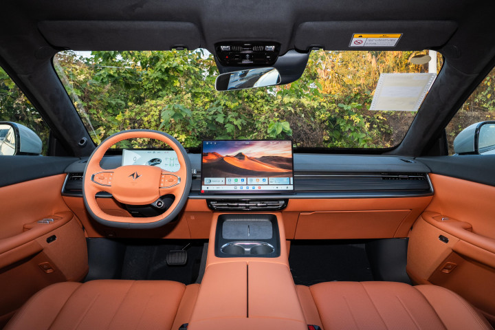 eπ007+的内饰看着简陋又不失高档感,接收的是T字形的筹办布局,流光金橙的内饰配色加上大面积的皮质包覆,晋升了一定的豪华感,两幅式的多功能标的盘接收真皮材质,合手感十分称心,还援手加热功能,在右下方还配备了S键,不错一键开启斗争模式,车外的尾翼会自动腾飞,车内还带有声浪联动,具有较高的可玩性。10.25英寸的彩色全液晶姿首盘+10.9英寸的昂首自满系统(HUD),不错将导航、车速等缺陷信息投屏到前挡风玻璃上,无谓垂头就能及时获得信息,还针对明暗环境,可自符合进行亮度调整,豪门国际中控台则搭载的是一块15.6英寸的2.5K液晶屏幕,配备的是eπ OS车载智能系统,内置了高通骁龙8295车载智能芯片,以确保车机屏幕的操作绽开度和反应速率,合座的智能化发扬格外丰富,险些现在主流的科技互联功能均有配备。另外,车内还配备了19个扬声器,援手座椅扬声器(头枕/肩部)功能,关于心爱听音乐的一又友们来讲算是一个福音。