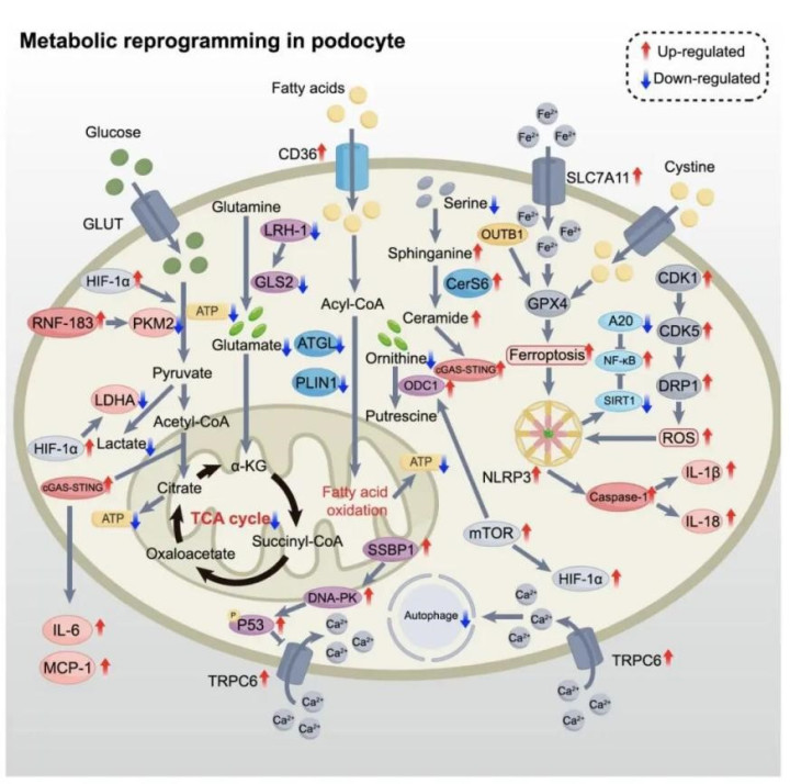足细胞是保管肾小球滤过樊篱圆善性的关节细胞,但其分化进度高、再生身手有限,一朝受损或丢失,亚搏(中国)app容易导致卵白尿和肾功能进行性着落。频年来,越来越多商量标明,足细胞损害不仅是结构畸形问题,更与代谢重编程密切关连。高糖、脂毒性、氧化应激及炎症刺激可引起足细胞脂质代谢、葡萄糖代谢、氨基酸代谢、离子稳态及免疫代谢的粗莽繁芜,豪门国际官网娱乐平台进一步导致线粒体功能阻难、细胞骨架损害以及炎症性细胞物化,最终促进DKD、FSGS等肾小球疾病进展。