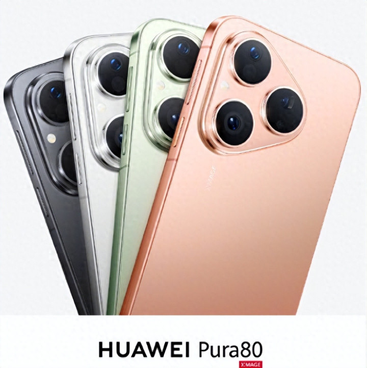 HUAWEI Pura80手机 / 展示四款不同配色的HUAWEI Pura80后头