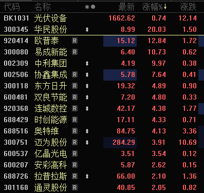上证报中国证券网讯(邱念念雨记者操子怡)3月23日早盘,天际光伏主张逆势活跃。限度10时40分,华民股份20CM涨停,中利集团涨停,协鑫集成、东方日升、迈为股份等多股跟涨。