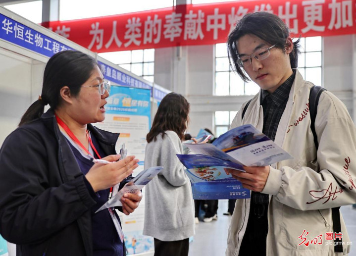日前,在河北省秦皇岛市海港区,东北大学秦皇岛分校2026届毕业生春季双选会在学校体育馆举办,160余家用东说念主单元来校接收贤才,累计提供8000余个用东说念主需求,旨在久了学校与各用东说念主单元间的辩论谀媚,为用东说念主单元和毕业生搭建高效的“双向遴荐”平台,助力毕业生高质地充分作事。图为求职者在了解干系招聘信息。(曹建雄摄/光明图片)