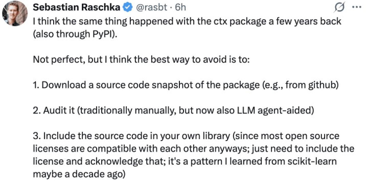 太阳下面无新事,Sebastian Raschka 发现这次波折和数年前的 ctx 包事件荒谬相似。
