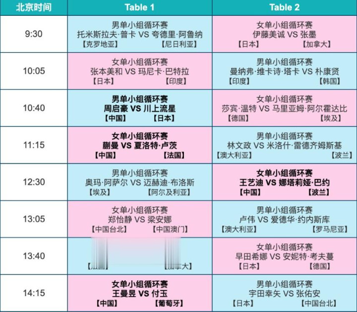 未来30日,开启首个比赛日,则小组的首轮争夺,国乒7东说念主出战,其中包括多名主力,孙颖莎、王曼昱、蒯曼先后出战。