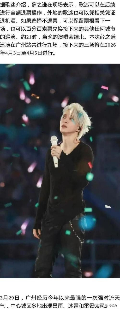 2026年3月29日,薛之谦广州演唱会因暴雨导致舞台栽种全面瘫痪,灯光、音响、荧光棒等中枢栽种失灵,上演成果大打扣头。面对这一突发景况,薛之谦就地文告: